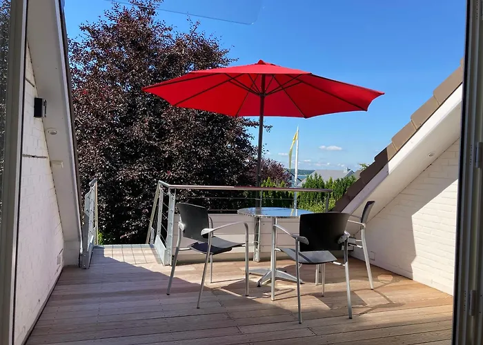 Overlooking the garden, the 60 m^2 Loft Gruener Ring Apartment Laboe is right by Ev.-Luth. Anker-Gottes-Kirche Laboe Protestant Church in Laboe.